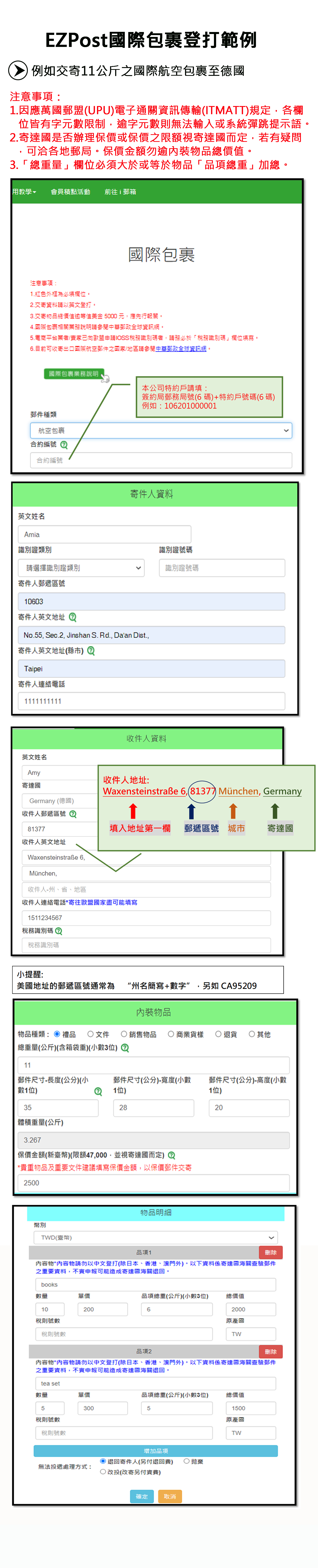 2.商業發票:如果郵局人員忘記把這個放進去請提醒他。